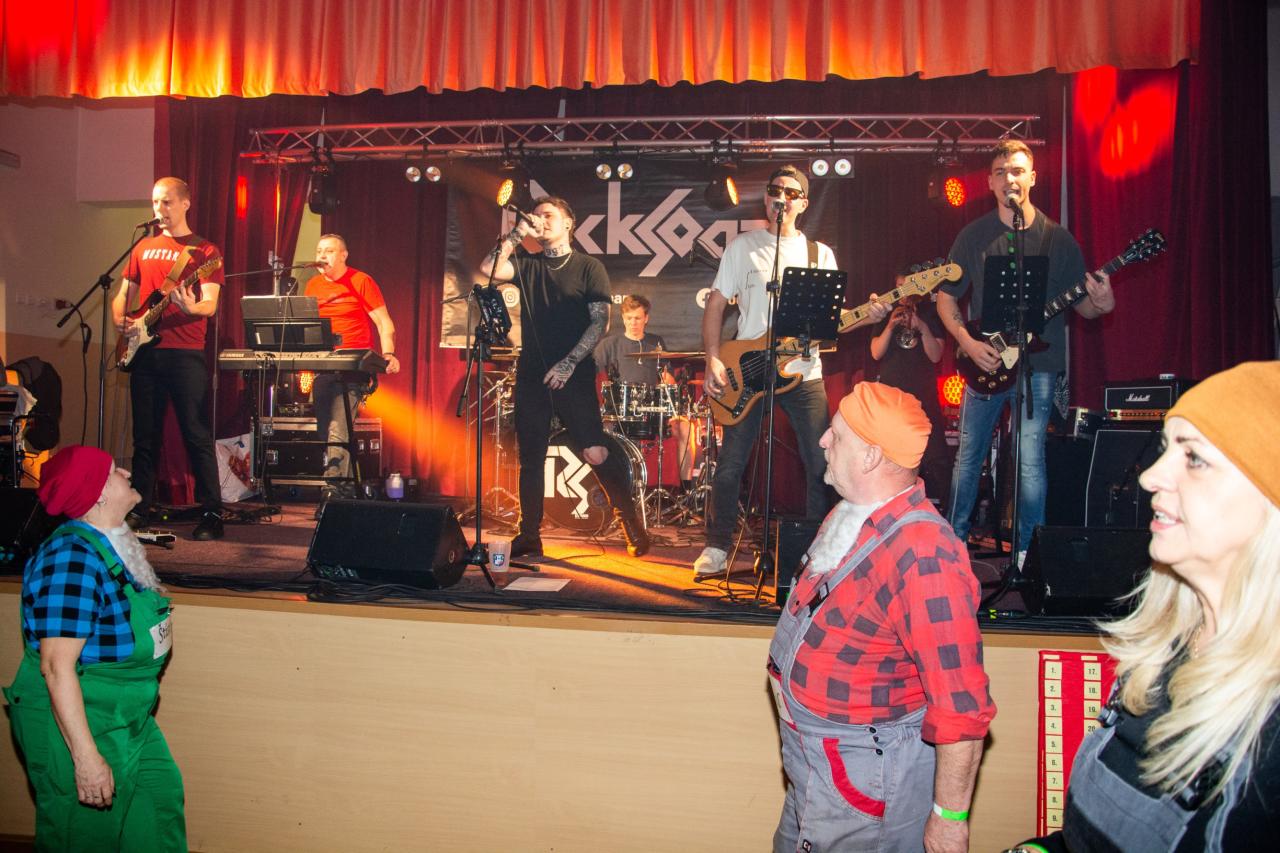 Večer jsme se potkali na sále kulturního domu. Hrála kapela Rocksoar a vážně jim to šlo! Pivo teklo proudem, zakousnout bylo taky do čeho, no a tombola byla bohatá. Snad se ti, co dorazili, dobře bavili.