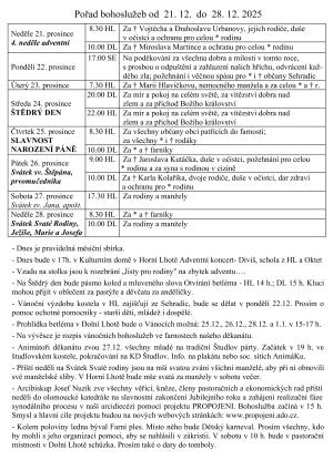 V týdnu od 21. do 28. prosince 2025 se uskuteční bohoslužby, včetně slavnostních obřadů na Štědrý den.