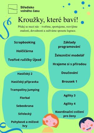 Středisko volného času nabízí pestrou nabídku kroužků, které baví a rozvíjejí. Mladí lidé se mohou zapojit do aktivit jako je scrapbooking, základy programování, nebo sportovní kroužky jako florbal a sebeobrana. Přidejte se k nám a užijte si společné chvíle plné zábavy a nových dovedností.