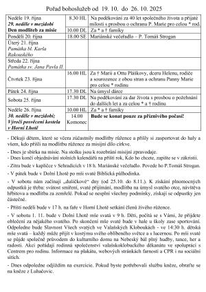 Pořad bohoslužeb 19.10. - 26.10.2025