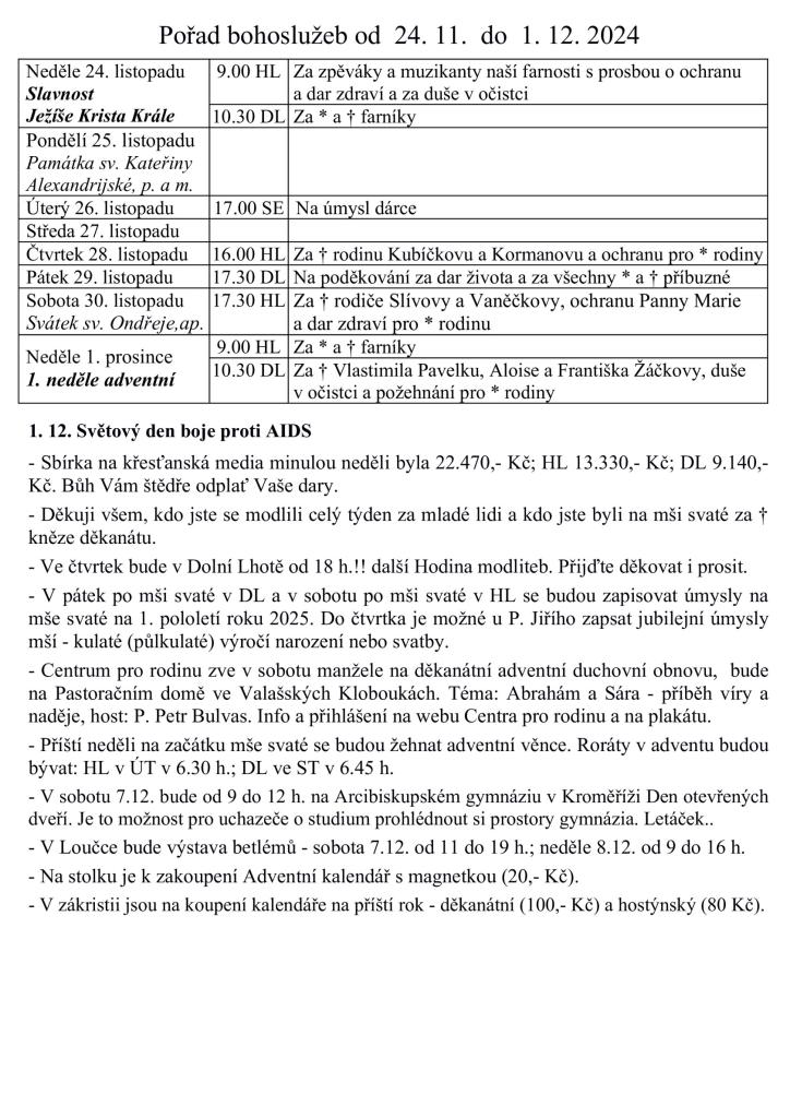 Termíny bohoslužeb.