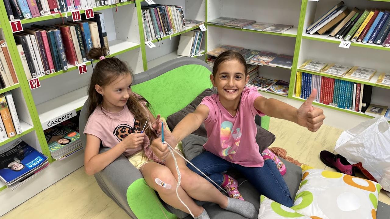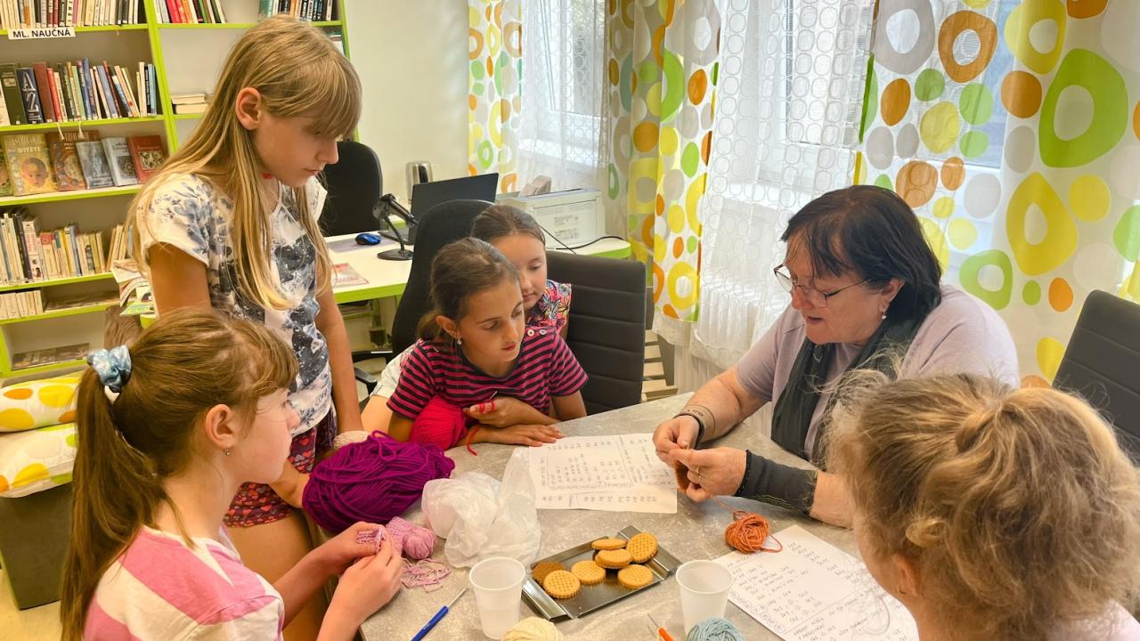 Dámy z Klubu seniorů předávaly zkušenosti s háčkováním mladé generaci.