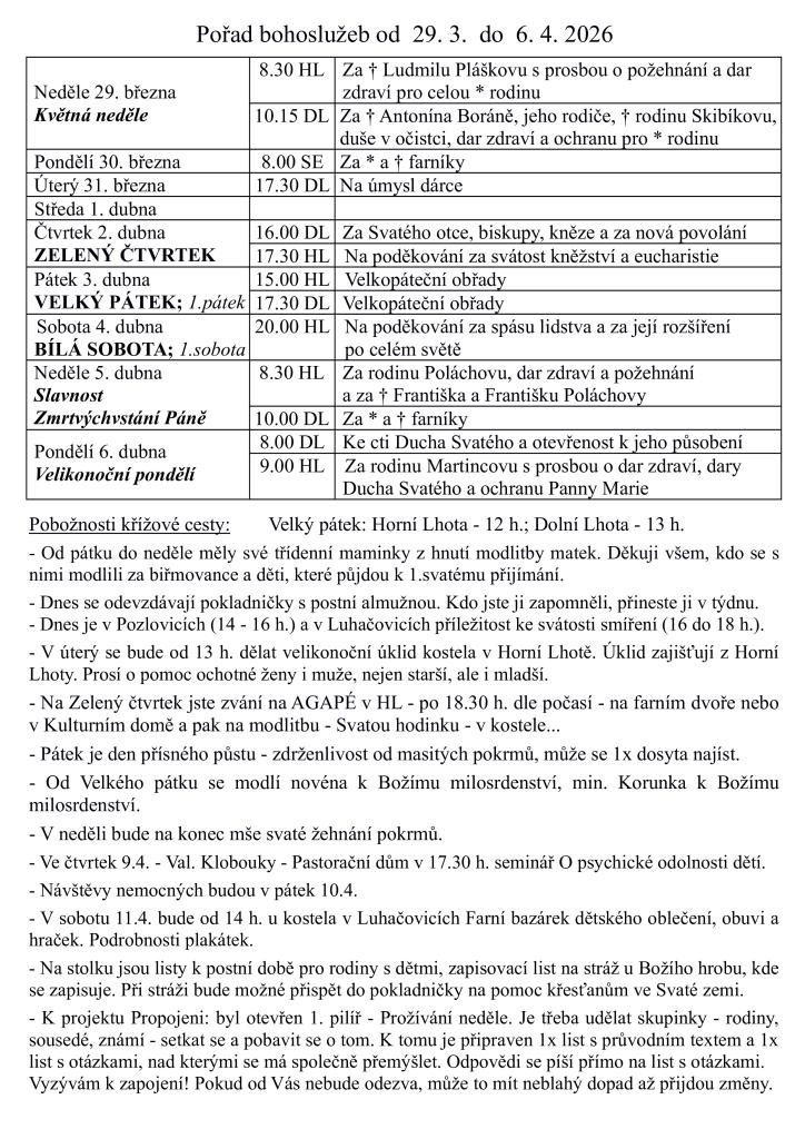 Termíny obřadů a bohoslužeb Svatého týdne Velikonoc.